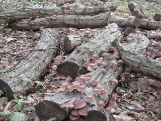 Every few years, I put out more logs to ensure continuous crops. I buy 1000 plugs at a time, so when there is a big crop, it is up to 20 pounds of mushrooms.