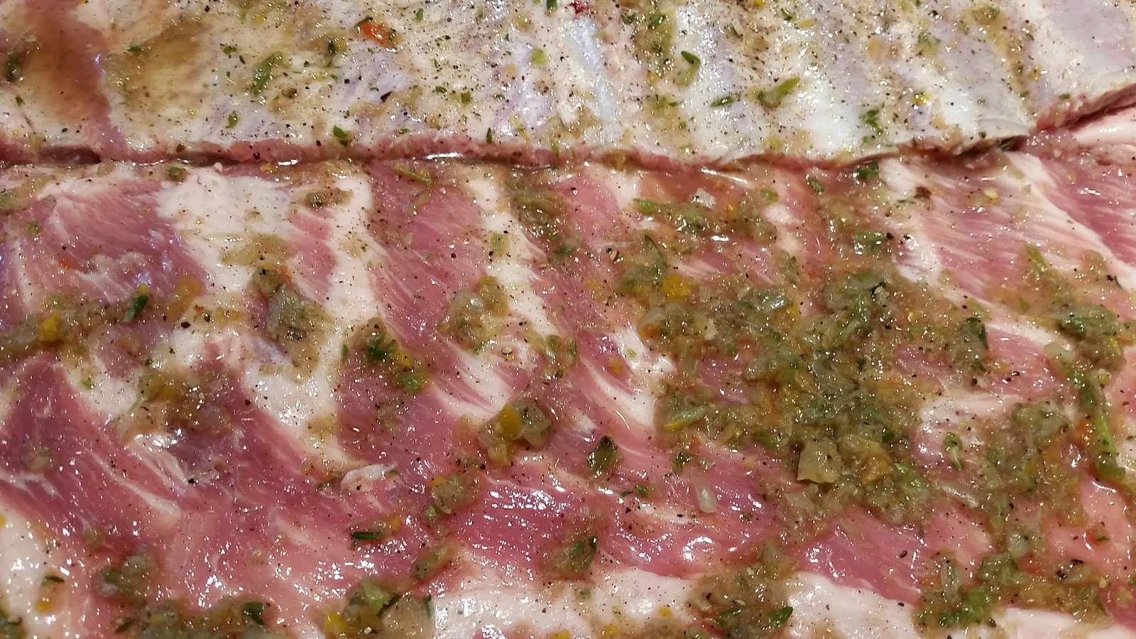 | Ribs with Jerk Rub. Look closely at all of those orange bits of Habanero! |