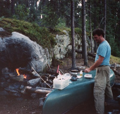 | This campsite had a cool fireplace and a rack that allowed me to use our canoe as a table |