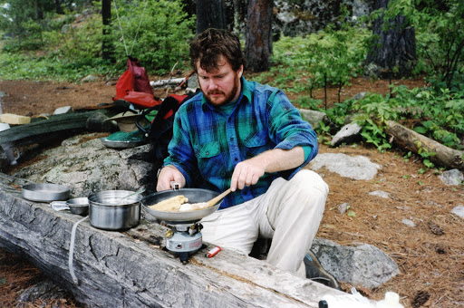 | Sometimes a log becomes a kitchen, but at least we had a skillet full of fish! |