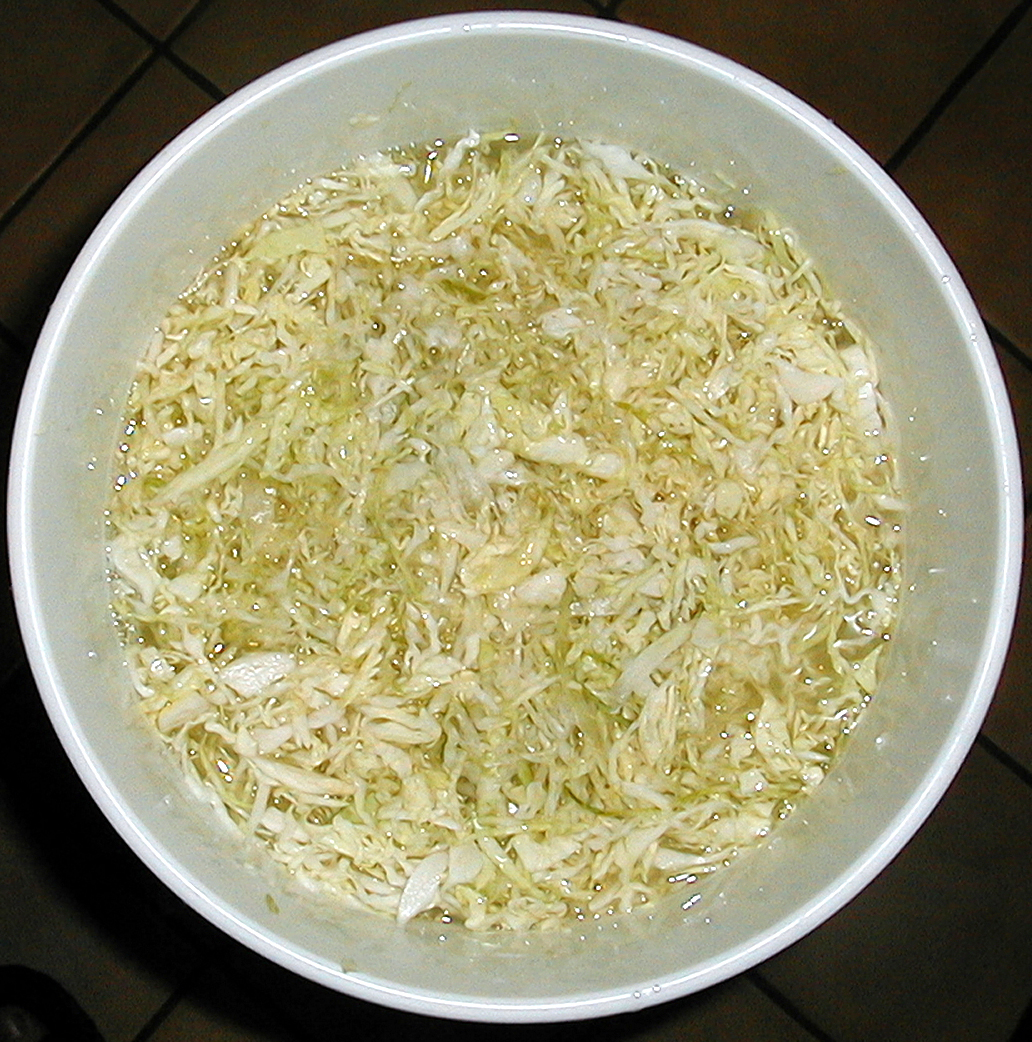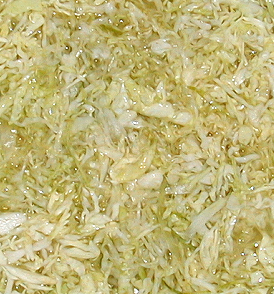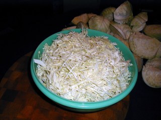 Sauerkraut is made by mixing shredded cabbage with salt. According to Harold McGee’s wonderful book, On Food and Cooking: The Science and Lore of the Kitchen, this mixture creates the proper environment for the lactic acid bacterium Leuconostoc mesenteroides to grow. When the pH drops sufficiently, then the conditions become right for Lactobacillus plantarum to take over. My own experience in making kraut shows that as long as you take simple precautions to avoid making conditions right for various wild yeasts and molds, it is pretty easy to make some of the best kraut you’ve ever tasted.