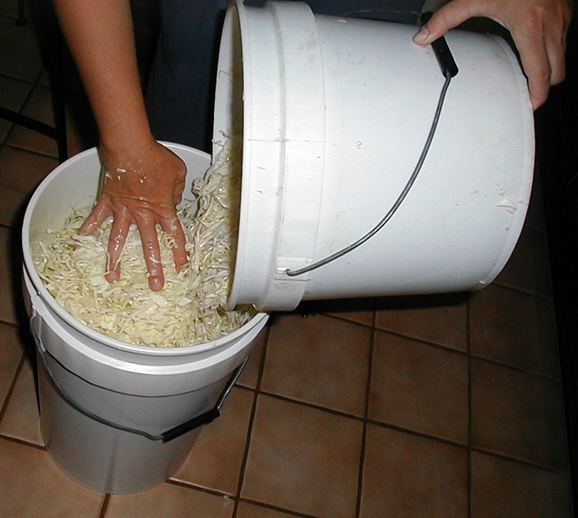 The history of pickling goes back over 4,000 years, with the first written records coming from India. Pickling is a means of preserving the harvest through the use of salt and acid. There are two basic types of pickling. The first uses a brine to draw water out of the item to be preserved, and then the water is replaced with vinegar or another acidic liquid. The second method uses a brine to create proper conditions for fermentation which produces acid needed to preserve the pickled item. Sauerkraut falls into this second category.