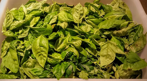 | A food lug full of Basil leaves |