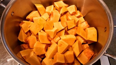 About 4 pounds of winter squash peeled and cut in 1” cubes
