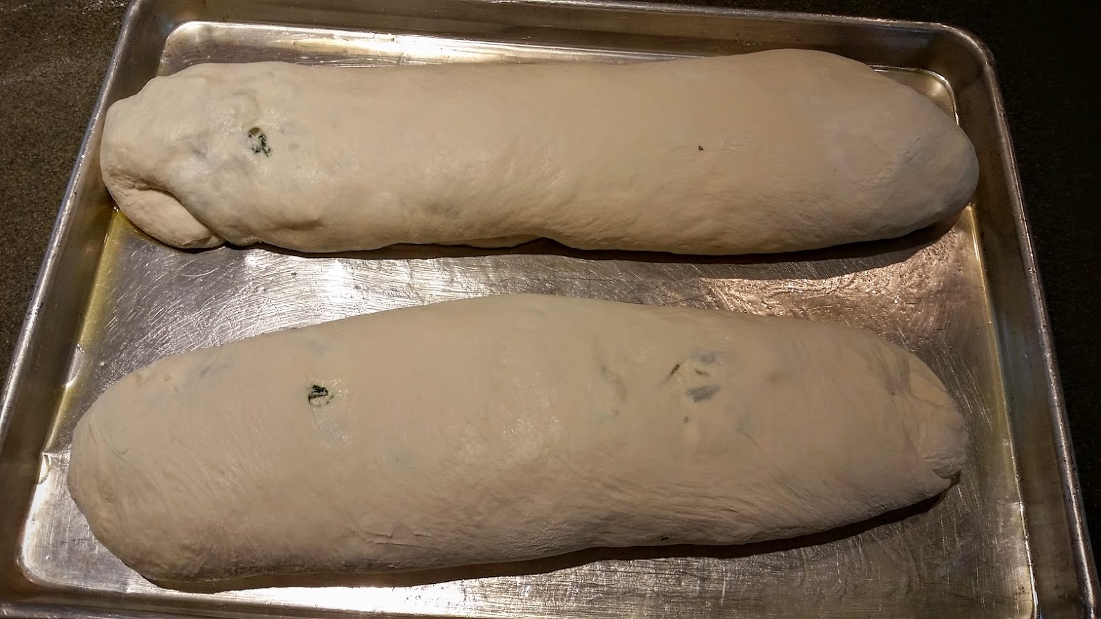 Leave space between the loaves. Sometimes the cheese finds a way out during baking, and sometimes the loaves expand and converge. That’s all ok, but try to avoid it if you can.