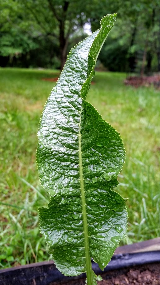Time went by, as it does, and my dad’s health failed. He was in hospice this Spring, and I was with him every possible day. He asked me to look after his garden. I noticed he had dumped a huge load of dirt on top of the horseradish, trying to kill it off. I mentioned it to him, and he cracked a smile. Yes, he had been trying to kill it off. A few days went by and I let him know the horseradish was winning. It had pushed up through the dirt. He first looked defeated, but then he smiled again.My dad passed away, and I did as much with his garden as I could, but I needed to get home (2-1/2 hours away). I weeded and planted things he had asked me to. His garden is huge, so some of it is fallow. Neighbors came to help, and one of my uncles weed whacked the horseradish. I dug up 5 nice roots and transplanted them to my garden…where nothing else would grow.