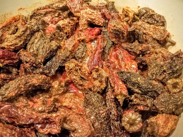 What makes them so good? First there’s the smoke, always the smoky goodness. But there’s more. Because the chilies were dried and smoked first, they have soaked up the flavors of the adobo. The adobo makes what was already good into a much more complex element. That element fits into many dishes so well.