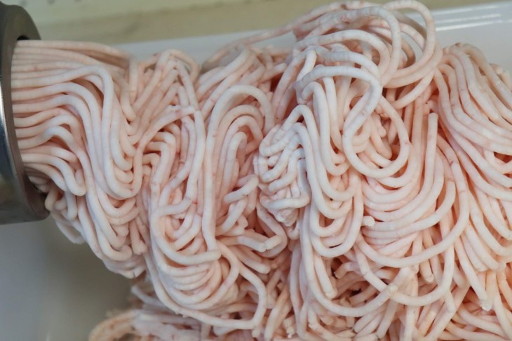 I have pork scraps on hand from hog butchering. I ground 1/2 lb with a 3mm plate. You can use ground pork for this if you don’t have scraps to grind.