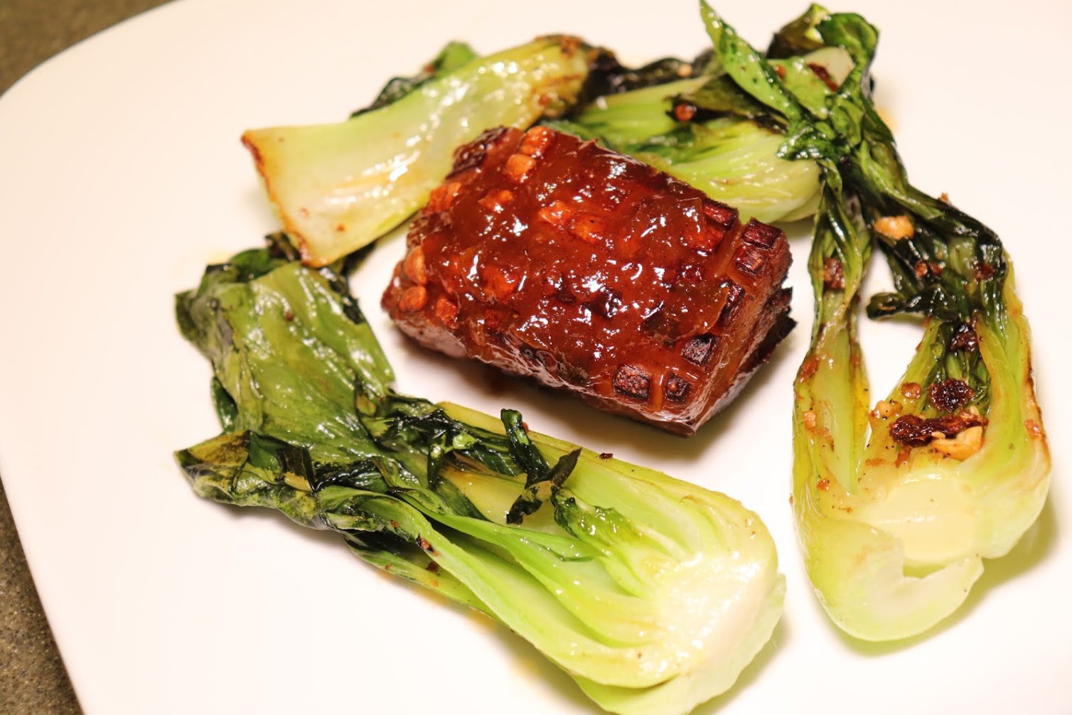 This goes quite well with stir fried bitter greens. I have it here with stir fried baby bok choi along with some of my Sichuan chili oil.