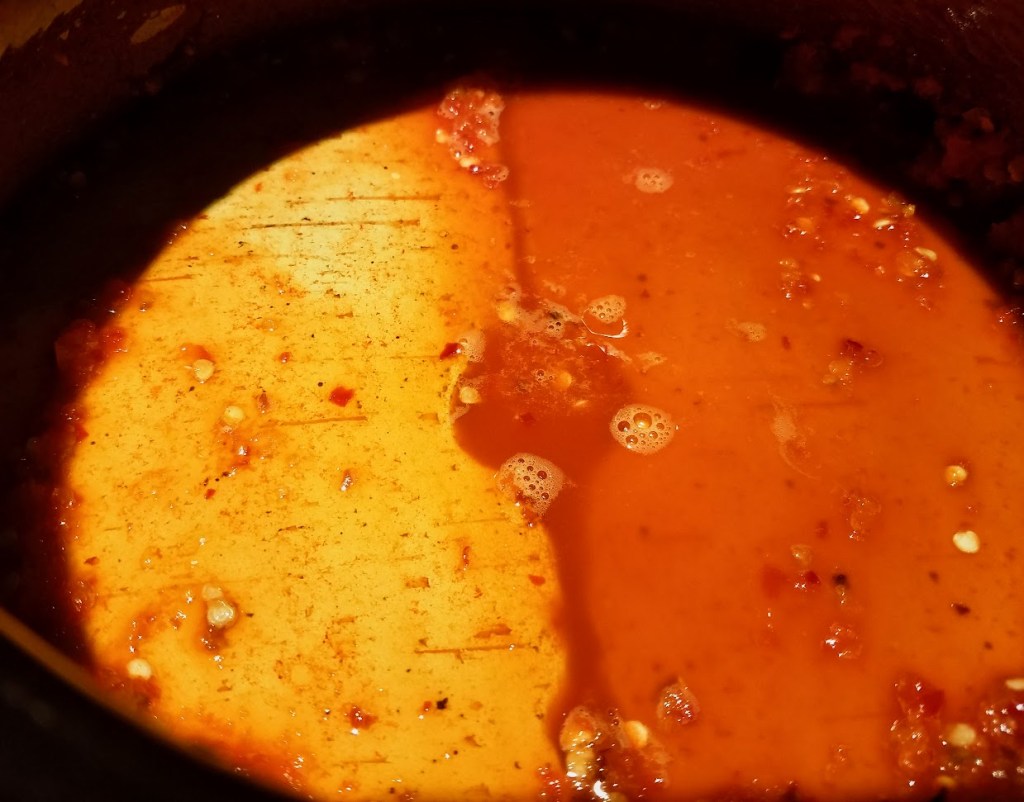 An optional step is to thicken the sauce with a bit of xanthan gum. This is tricky stuff. You can find it in the baking section of most grocery stores. Bob’s Red Mill is the brand I see most often. The package is a lifetime supply. For two gallons of sauce, use 1/2 or 1 teaspoon of xanthan gum. To prepare it, take a cup of your strained sauce and place in a blender, or in a bowl with an actively running stick blender. With the blender running, add 1/2t xanthan gum powder. If you just add the powder and then try to blend, it will form clumps that will take much more effort to dissolve. Stir the thickened cup of sauce into the full batch. Assess the texture, and if you want it thicker, then repeat the process with another 1/2t of xanthan gum.