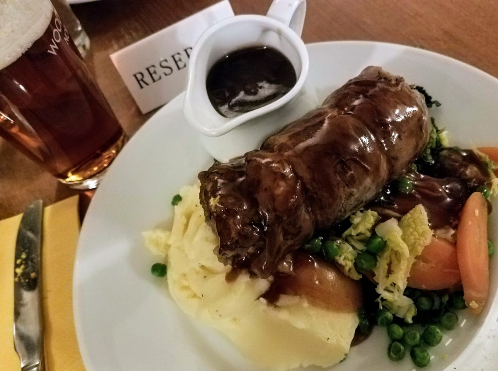 On my first trips to England 30 years ago, the pubs had fine beer, but the food was just sustenance for the drinking. I recall bread, cold cuts, overdone beef, pizza covered with canned corn! Of course there were exceptions, but now the places that don’t serve fine food are more the exception. The choices range from gourmet fare to standard pub favorites, and even the latter are taken to a high standard these days. Some of the best foods I have eaten have been in pubs in England.