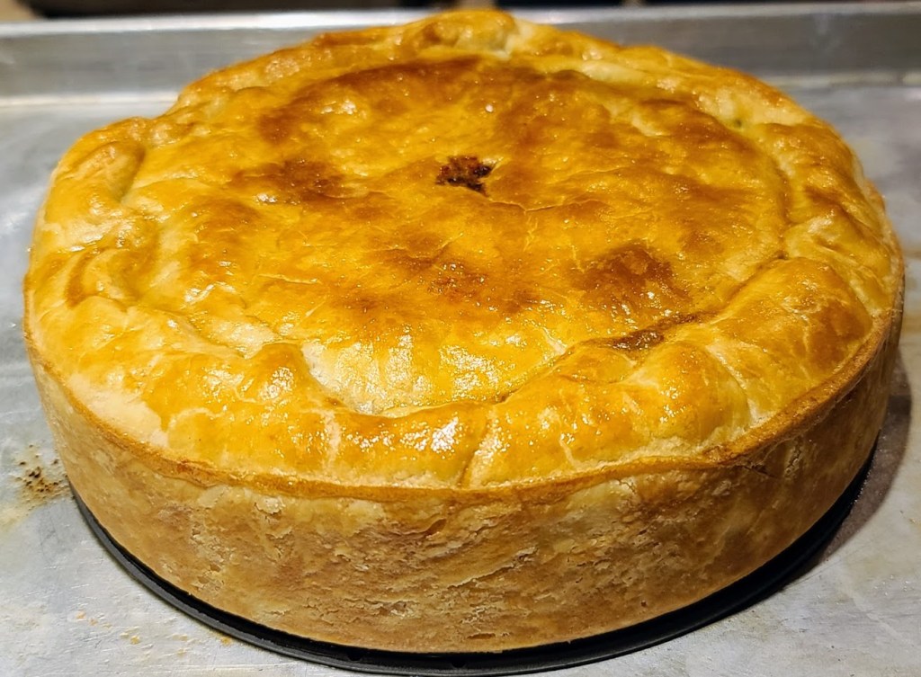 When traveling, I tend to seek out the local specialties. One such specialty I am particularly fond of is the savory pies. I am a sucker for pies of all kinds, but a crisp, hot flaky crust enclosing a rich meaty filling is just about the perfect accompaniment to a delicious pint of cask conditioned bitter or mild ale.